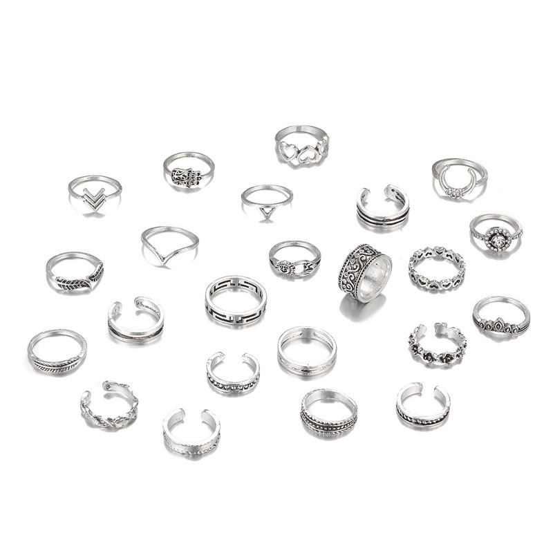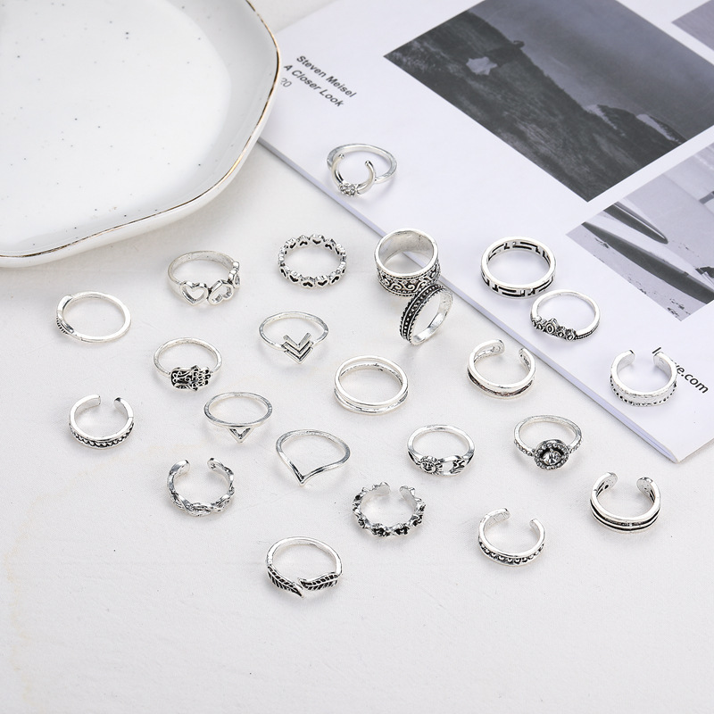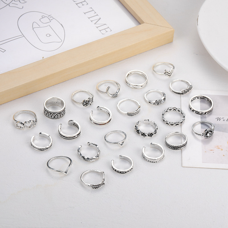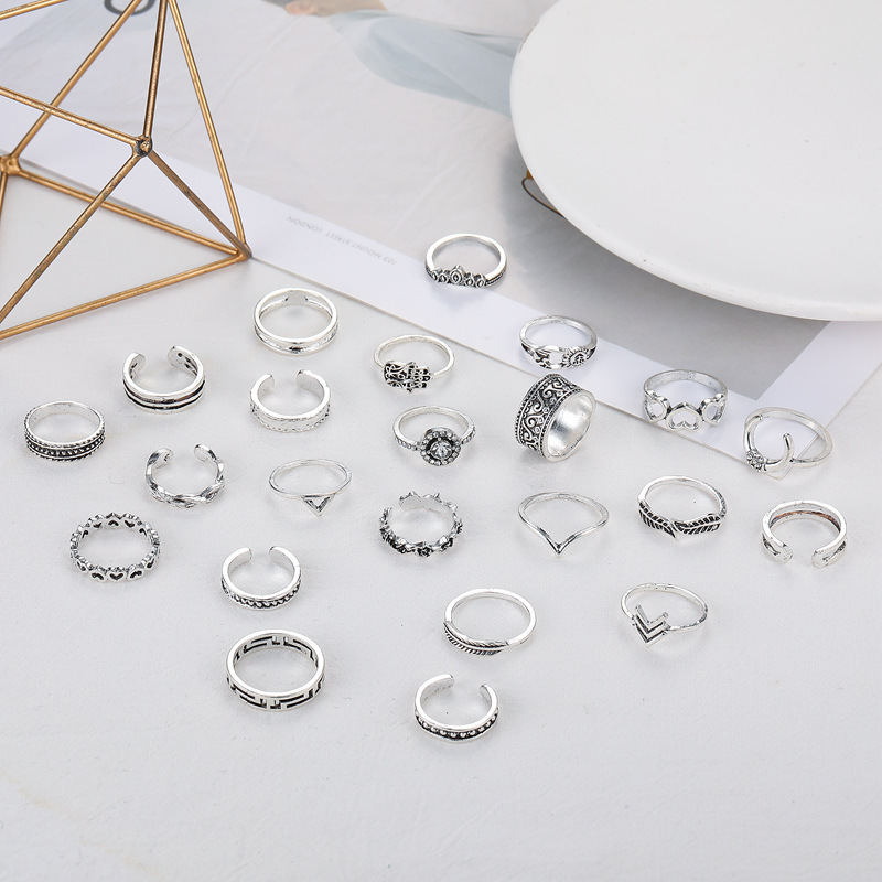 Customizable Vintage Hollowed-out Heart Ring Set