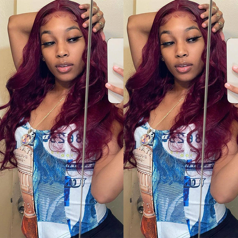 Mid-section Big Wavy Long Curly Hair, Fluffy Wine Red Long Hair